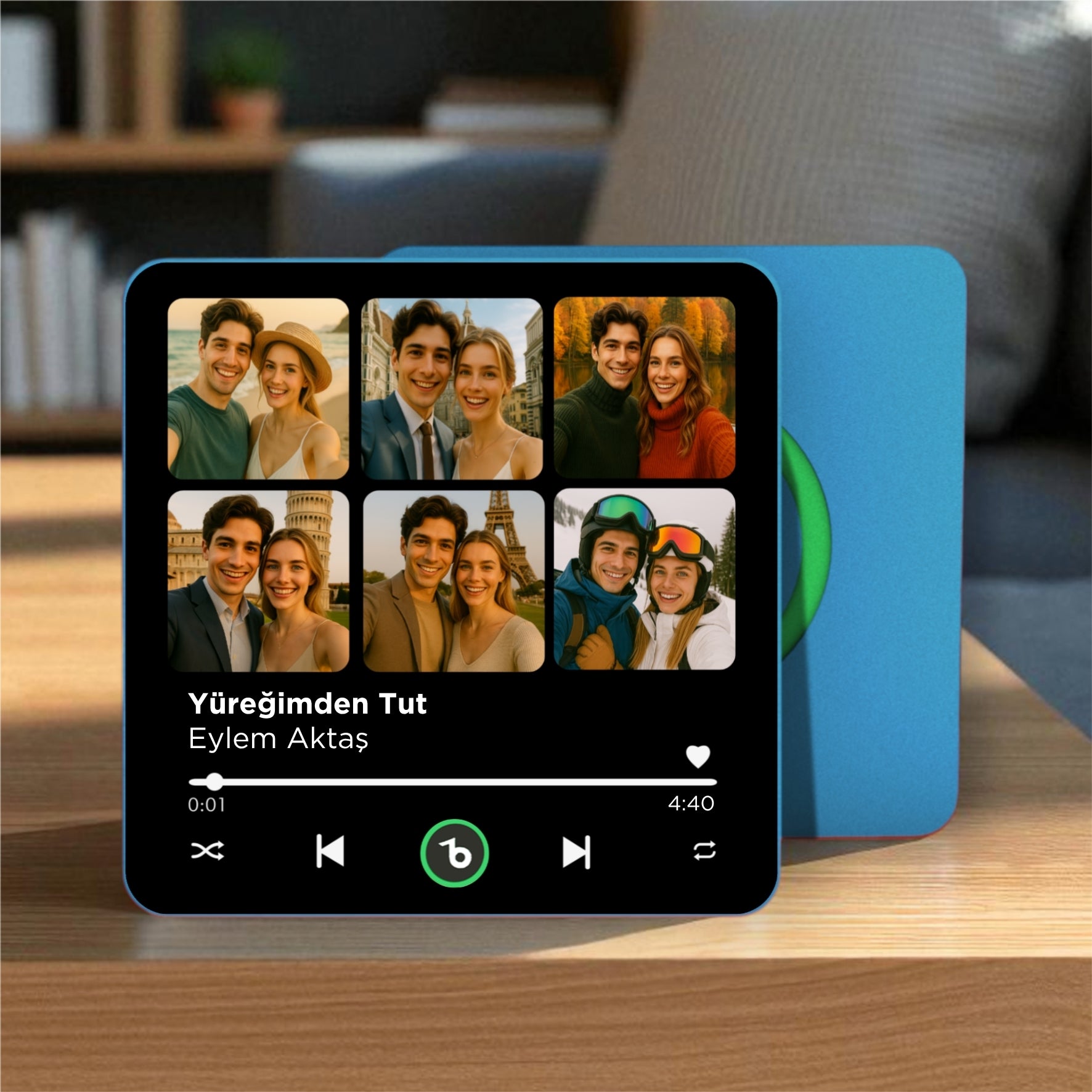 Bu özel magnet, sizin için anlam taşıyan bir fotoğrafla tasarlanır ve içine kalbinize dokunan bir şarkı yüklenir.